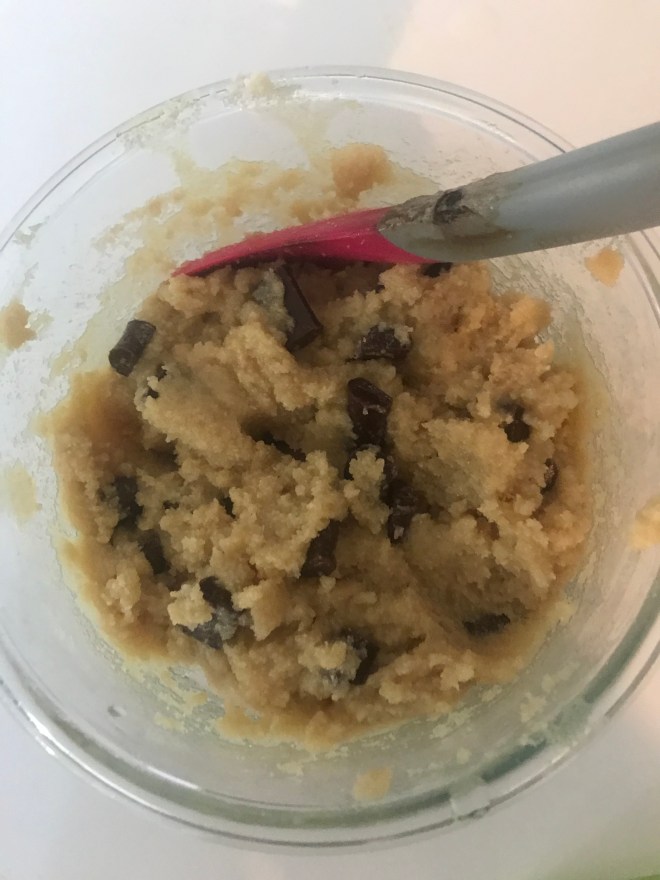It is gluten-free. It is a cool experience making the recipe because you get to pour some ingredients in the bowl. It is also cool because you do not have to put the cookie dough in the oven like other cookie recipes. This is a great recipe for children!