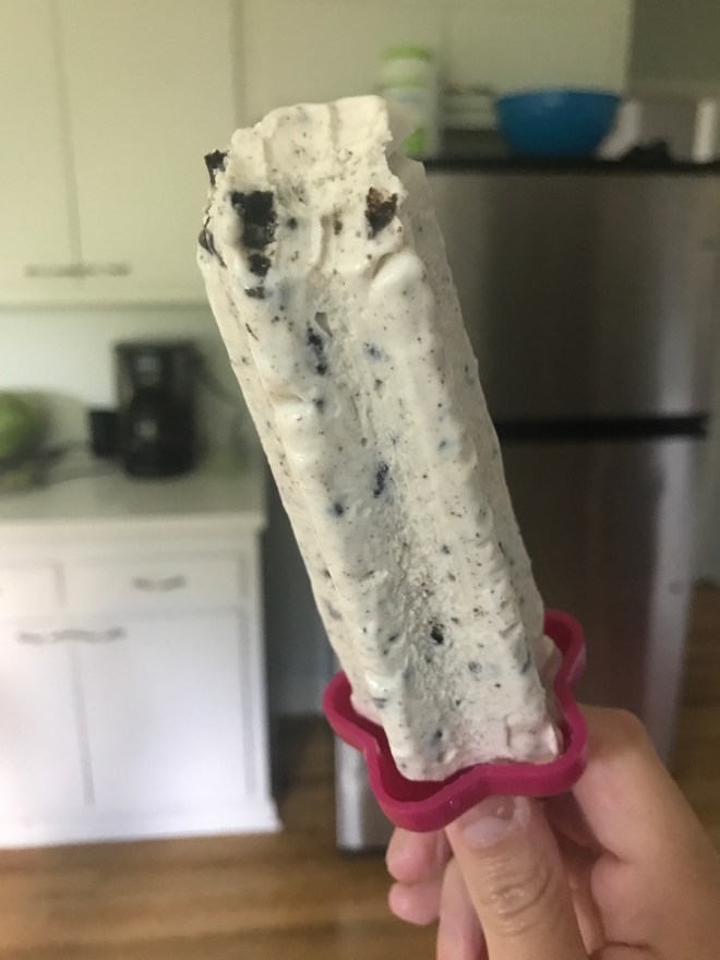One day I was thinking of eating a pack of oreos. Then an idea popped into my head and it was, “I haven’t used my popsicle maker in a year, so I can make an oreo popsicle!” As part of the instructions, I got to crunch oreos. It was very fun. Did you ever make anything like oreo popsicles? If not, this is going to be a whole new world.