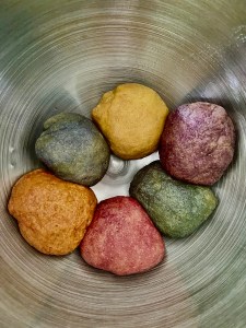 We used a combo of bread and multigrain flour and natural food coloring so it was harder to achieve a bright color.