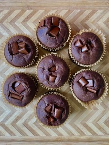 - Add a few pieces of chocolate to the top of each cupcake and push down a little